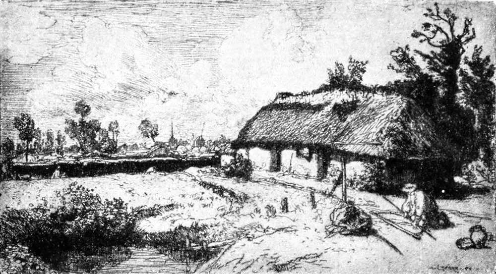 Another chief excellence in Mr. Webster’s work lies in the fact that from the first he has been his own printer. He is no believer in the principle followed by many other etchers of biting their plate and leaving it to some one “with the palm of a duchess” to do the rest. Patient acquisition of craftsmanship is bound to tell, for the paid printer, be he never so skilled, cannot hope to understand an artist’s intentions quite so[Pg 250] well as the artist himself. Mr. Webster, however, has no need of any artifice; there is no trace in his etchings of the meretricious printing which Whistler condemned as “treacly.” Light and shade enter into charming alliance in his prints, but line is always of the confederacy, and it is to purity of line that the shadows which tell so strongly owe their strength. In the very depths of them there is always a luminous gloom, never a trace of the harshness and opacity that come from slurred workmanship and reliance upon printer’s ink.