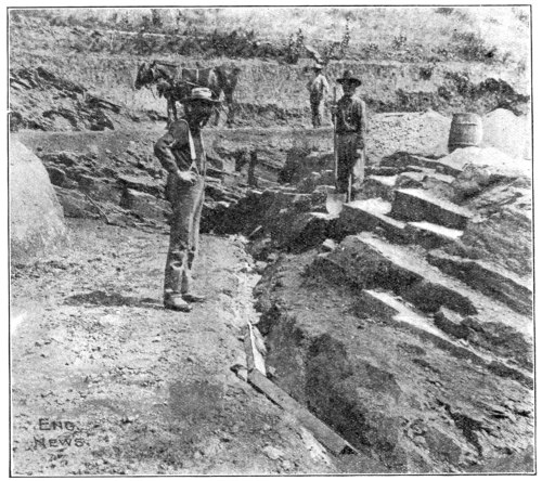 [1] The writer had intended to present a table of physical properties of different materials, giving their specific gravity, weight, coefficient of friction, angle of repose, percentage of imbibition, percentage of voids, etc., but found it impossible to harmonize the various classifications of materials given by different authorities.