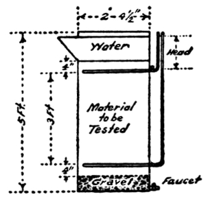 [4] By effective size of sand grains is meant such size of grain that 10% by weight of the particles are smaller, and 90% larger than itself; or, to express it a little differently, the effective size is equal to a sphere the volume of which is greater than ¹/₁₀ that forming the weight and is less than ⁹/₁₀ that forming the weight.