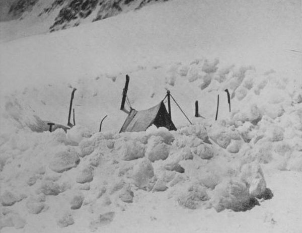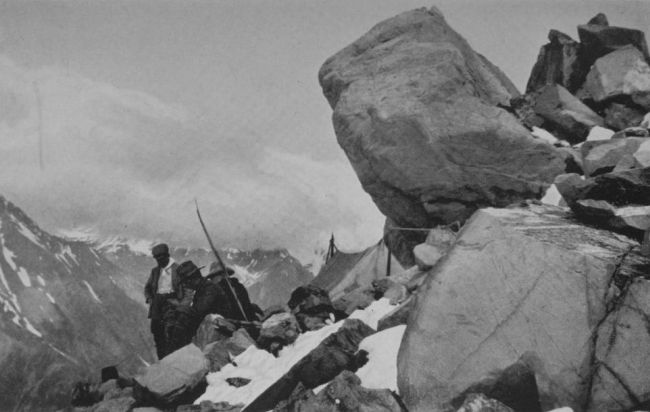 | We decide to make a New Pass—Bivouac at Malte Brun—A Start by Moonlight—Early Morning on the Glacier—Dawn on the Pass—Rotten Rock and Broken Ice—Some Difficult Climbing—An Ice Fall and an Avalanche Shoot—We reach the Whymper Glacier—A Cannonade from the Dome—We explore New Country—West Coast Vegetation |