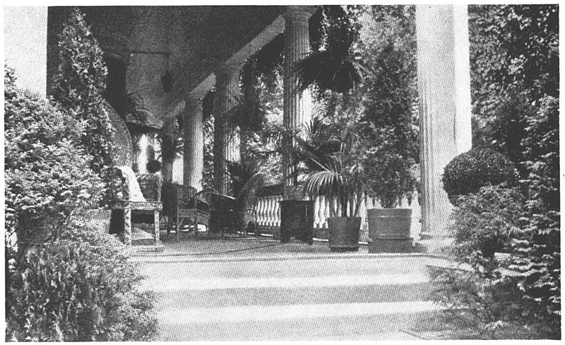 A five-car garage was built to the far side of the garden, arranged so that it would be possible to use it as a charity theatre, with quarters overhead for the gardener and his family. As protection against the elements and the public, a six foot red brick wall of Colonial design was erected on the south and east sides of the estate.