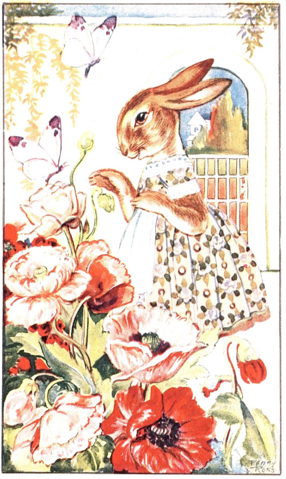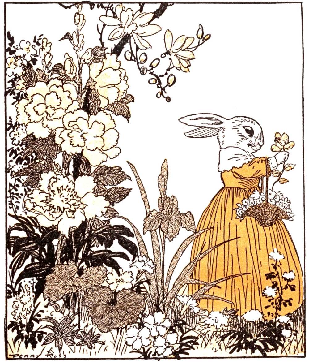 Soon Pretty Bunny was well and helped Old Mother Bun protect her roses, and cover the fern bed and soon snow fell on Old Mother Bun’s garden, but the flowers in the Green House were blooming merrily, and many customers came to buy.