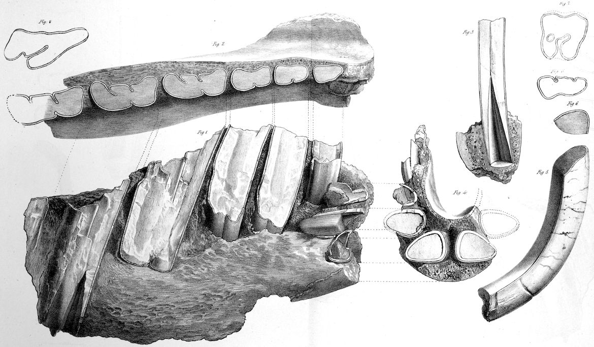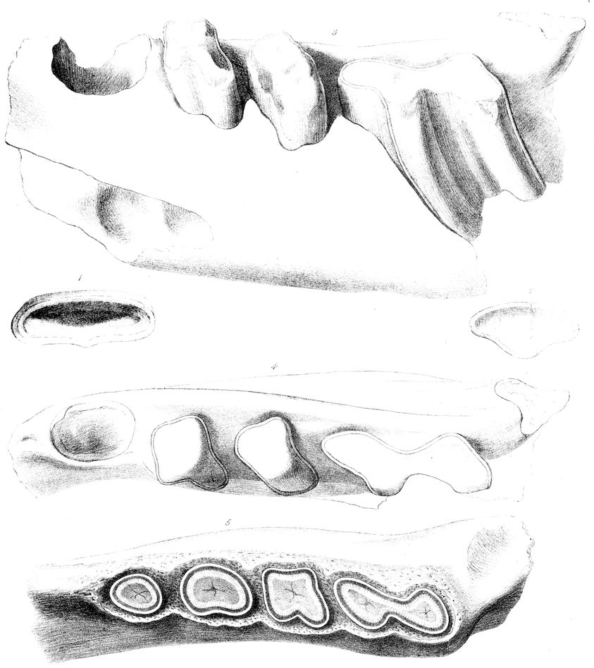 | Fig. 4. Section of lower jaw and molar teeth, Scelidotherium. | |