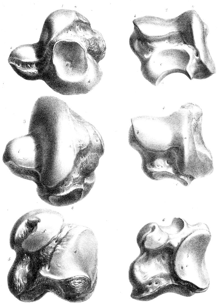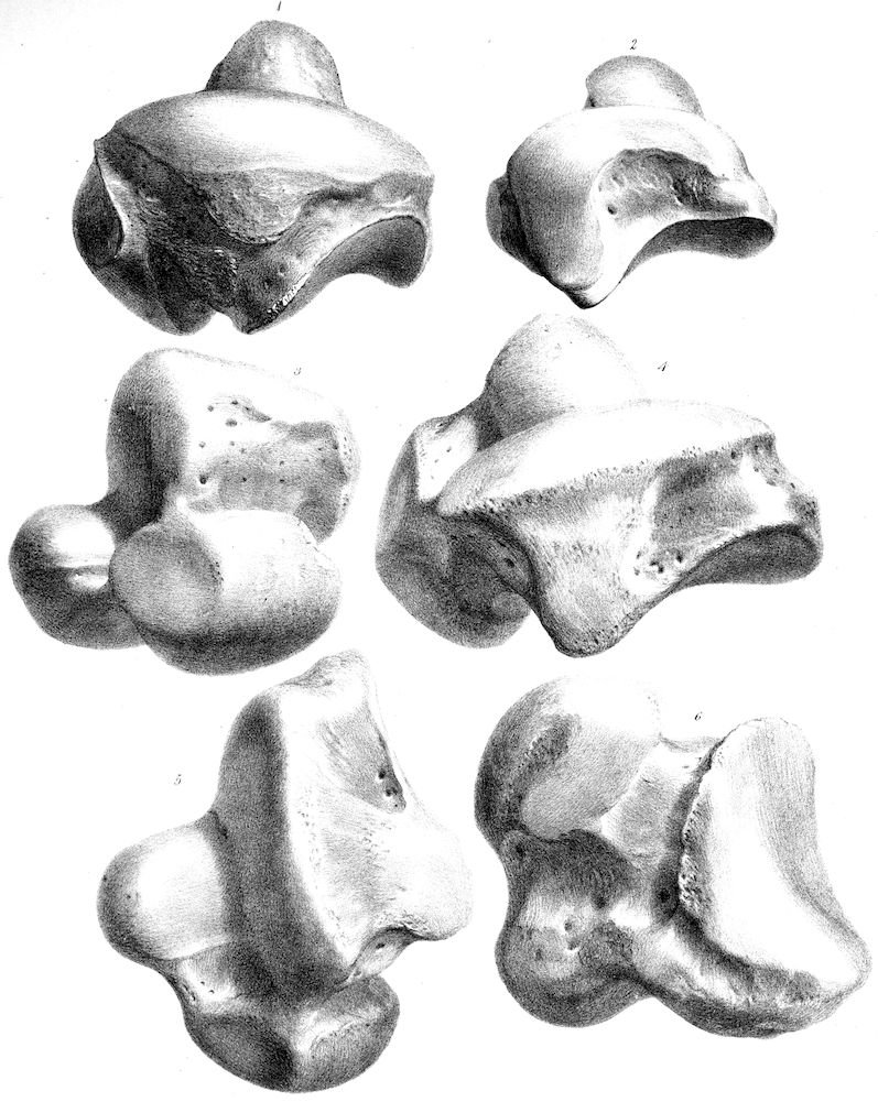 | Fig. 2, 4, and 6. Astragalus of Scelidotherium. | |