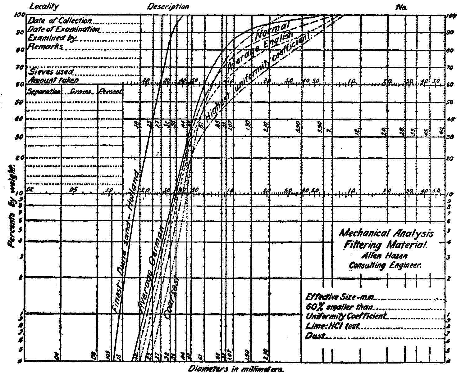 In the table of “ANALYSES OF SANDS USED IN WATER FILTRATION” the place name “Owesty” has been corrested to read “Oswestry”.