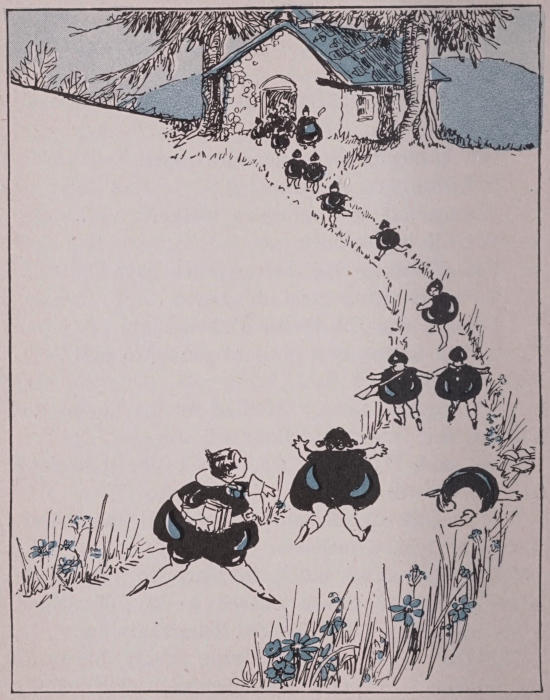 The little dwarfs all shook their heads sadly. Then what do you suppose happened? The Ink-Bottle Babies all rose and began to dance and cry,