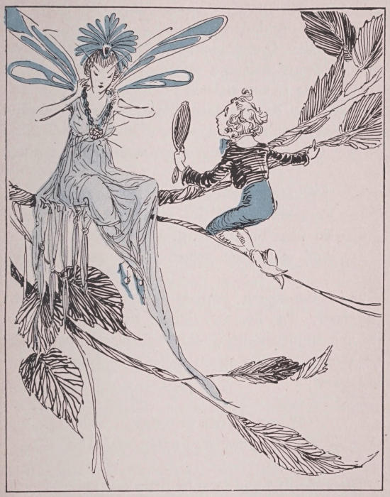 Then the chair rocked the little dwarf safely home, and ever after he was so polite that if he even met a squirrel in the woods he would stop and say, “Excuse me, sir, am I disturbing you? Thank you, sir, I will come this way again, if you please!”