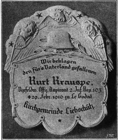 Nicht ganz auf gleicher Höhe steht die in der Porzellanmanufaktur selbst aufgehängte Gedenktafel für die Gefallenen des Werkes. Inschrifttafel und ihre Umrahmung sind nicht in so innige Verbindung gebracht worden, als man hätte wünschen müssen, auch ist das Figürliche ohne genügenden inneren Zusammenhang. Aber im ganzen zeigt auch diese Arbeit, was aus dem Porzellan herausgeholt werden kann.