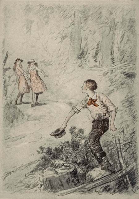 All at once Dick again said sharply, “What’s that?” He looked down the wooded, rocky slope to the left. “I knew I saw somebody!” he exclaimed, and ran down the hill.