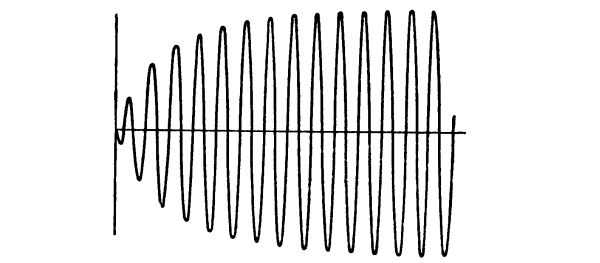 If, on the other hand, the receiving body has a persistent period of vibration, continuing in motion long after it is left to itself (Fig. 2) like another tuning fork or bell, for instance, then far more facility of response exists, but great accuracy of tuning is necessary if it is to be fully called out; for if the receiver is not thus accurately syntonised with the source, it fails more or less completely to resound.