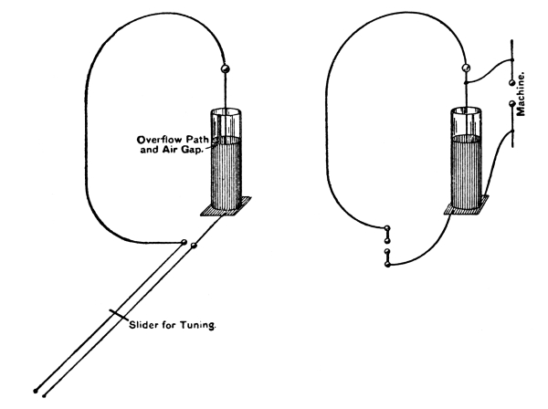 The resonator, with its spiral empty, was syntonised with the exciter, and the maximum spark measured. It was between 4 and 9 millimetres long in these experiments. Then one or other of the above cylinders was introduced and the spark length measured afresh. [Pg 132]