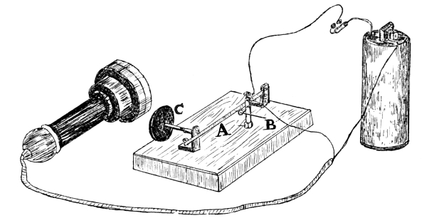 When I consented to discourse on the work of Hertz, my intention was to repeat some of his actual experiments, and especially to demonstrate his less-known discoveries and observations. But the fascination exerted upon me by electric oscillation experiments, when I, too, was independently working at them in the spring of 1888,[1] resumed its hold, and my lecture will accordingly consist of experimental demonstrations of the outcome of Hertz’s work rather than any precise repetition of portions of that work itself.