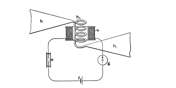 “Two years ago[43] it was proved by conclusive experiments that Hertzian waves travelling along an iron wire magnetise transversely the very thin layer into which the alternating current penetrates, and whose thickness does not exceed some thousandths of a millimetre. Once proved that alternate magnetisation can be produced with such rapidity, other questions present themselves. One asks, for instance, if it is not possible to demonstrate in magnetic cylinders stationary magnetic waves analogous to the electric stationary waves along metallic wires.”