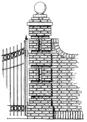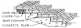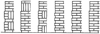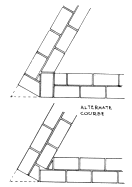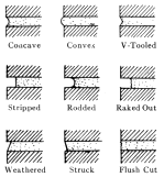 But this is not all there is to be said on the artistic side by any means. The structural necessity of bonding the brick makes possible any number of beautiful bond and pattern effects, as illustrated on pages 33-35; and the kind of mortar joint, struck, cut flush, tooled, or raked (Fig. 57), properly toned with a color to harmonize with the brick, produces the most charming results which, in sunshine or shadow, give ever varying artistic effects.