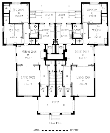 Next consider depreciation which is a separate item from maintenance or upkeep, and is practically nil in the case of the brick house. Appraisal engineers have estimated it, for the brick house, at only one per cent a year, beginning after the first five years. And the one per cent in reality should apply only to such portions of the building as are subject to wear, as finished floors, plumbing, hardware, roofs, and the like. Approximately 60 per cent of a well built brick house does not depreciate at all through a long period of years. On the other hand, a frame house, according to the same authorities, begins to depreciate from the day it is finished at from 2 to 3 per cent annually. At the lowest estimate of 2 per cent a $6,500 frame house would depreciate $130 a year or $1,300 in ten years. A similar house of brick, worth let us say $7,000, would depreciate, allowing the full one per cent, $70 a year from the fifth year on, or $350 in ten years. That is, when you add to the $350 depreciation the $500 excess cost of the brick house, the resulting $850 is still less by $450 than the depreciation alone on the frame house. The wear and tear of time do not allow us to get away from these facts.