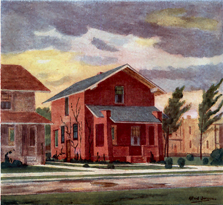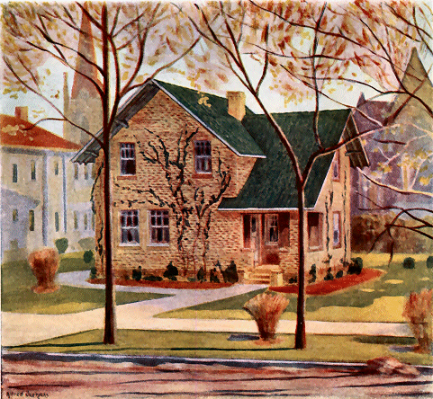 The American manufacturer of face brick has far outstripped the rest of the world in the wide range of color tones and textures he offers. So that the prospective builder has before him the possibility of giving to the exterior wall surface an enduring color scheme of monochrome uniformity or polychrome blending, as his taste may dictate. The whole sweep of color, in smooth or rough textures, is at his command from the pure, severe tones of pearl grays or creams, through buff, golden, and bronze tints to a descending scale of reds, down to purples, maroons, and even gun metal blacks. Thus, instead of building for your client a house of a dull, insubstantial, unattractive appearance, you can, by the use of face brick, build a substantial, enduring house that presents to the eye a veritable symphony in color, at once a satisfaction to yourself as well as to him, and a cause of appreciative remark by his neighbors or the casual passersby. It will always stand to the credit of your art as a builder.