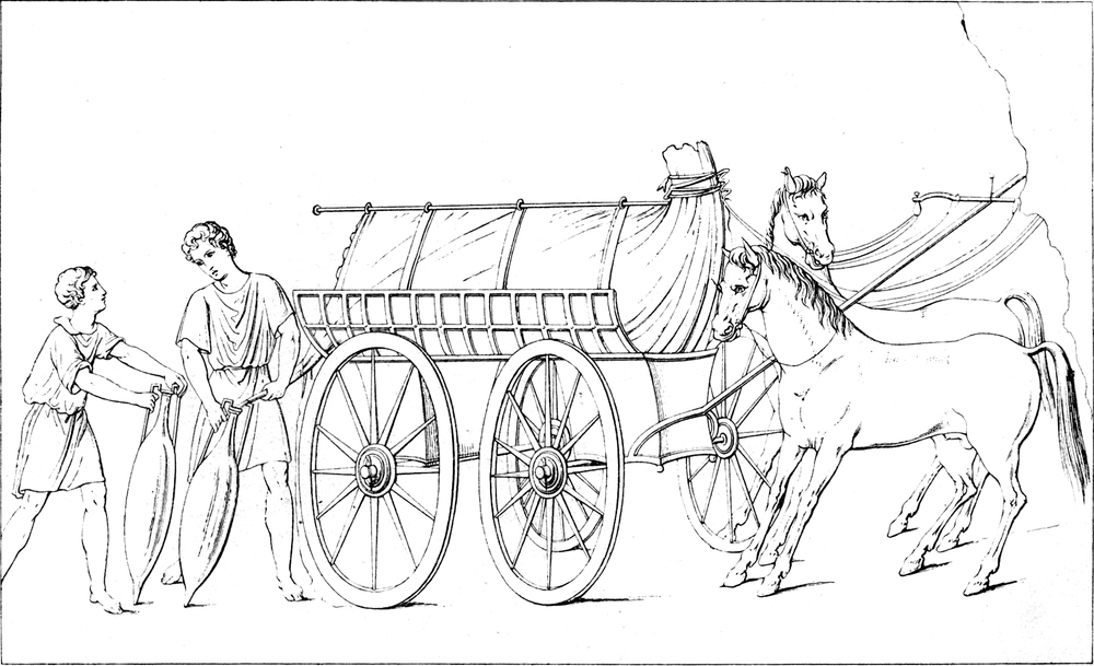 Römerstraßen der Kaiserzeit. Das Reisen. Reiseziele. Gattungen des Wagens.