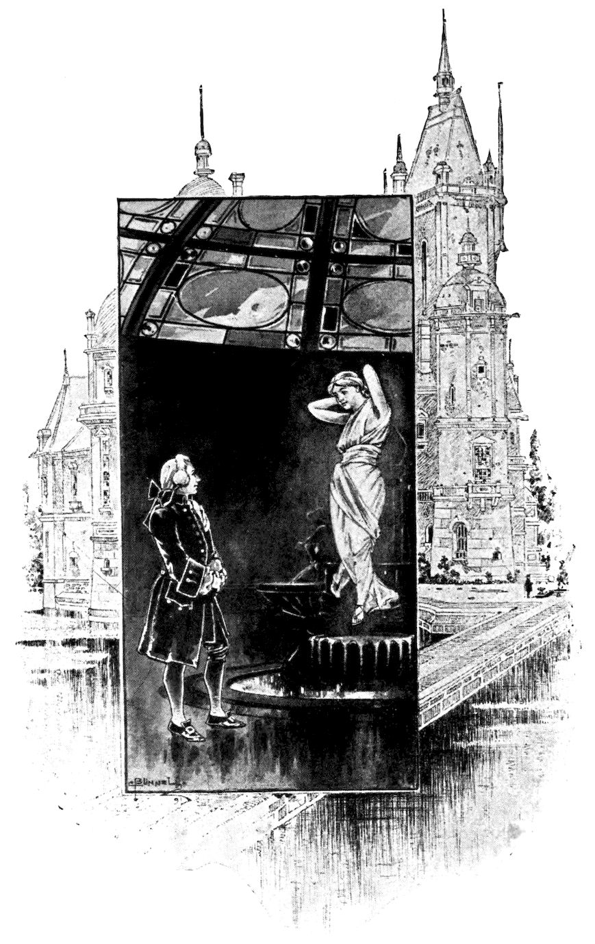 My room opened on the court of honor, which was immense and surrounded by magnificent buildings, whose delicate proportions were defined in pale blue against the dark sky, by the light of the first flashes.