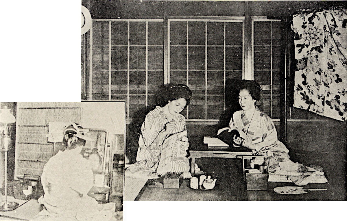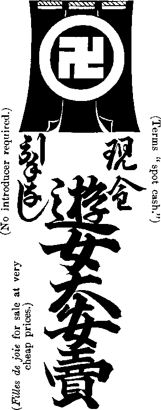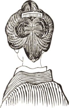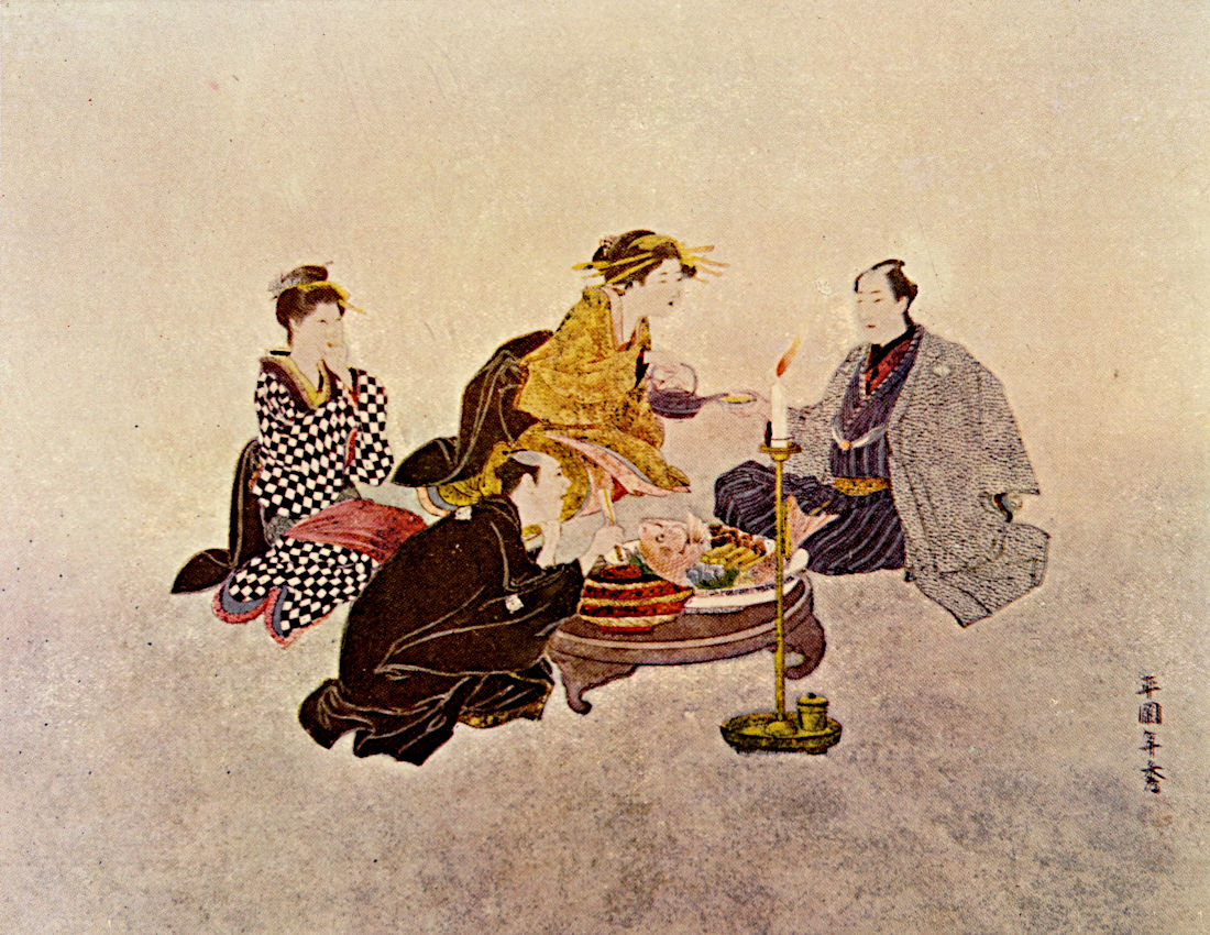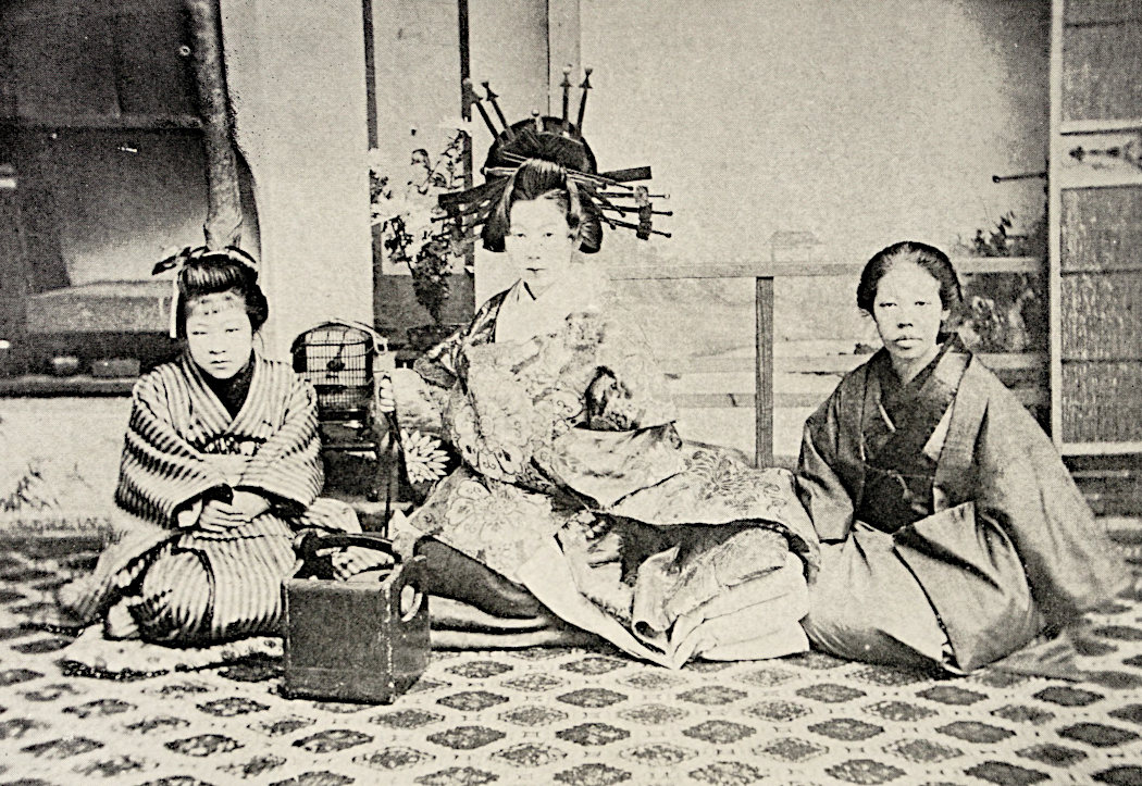 This poem, which the little Kamuro so proudly wrote, is a proof that the word oira (“I,” or in connection with no or ga “my” or “mine”) had been corrupted to oiran in the Yoshiwara. It would therefore appear that the present word oiran, which is universally used, arose from the fact that the attendants of courtesans anciently spoke of them as “oiran” (oira no ane = my elder sister).”