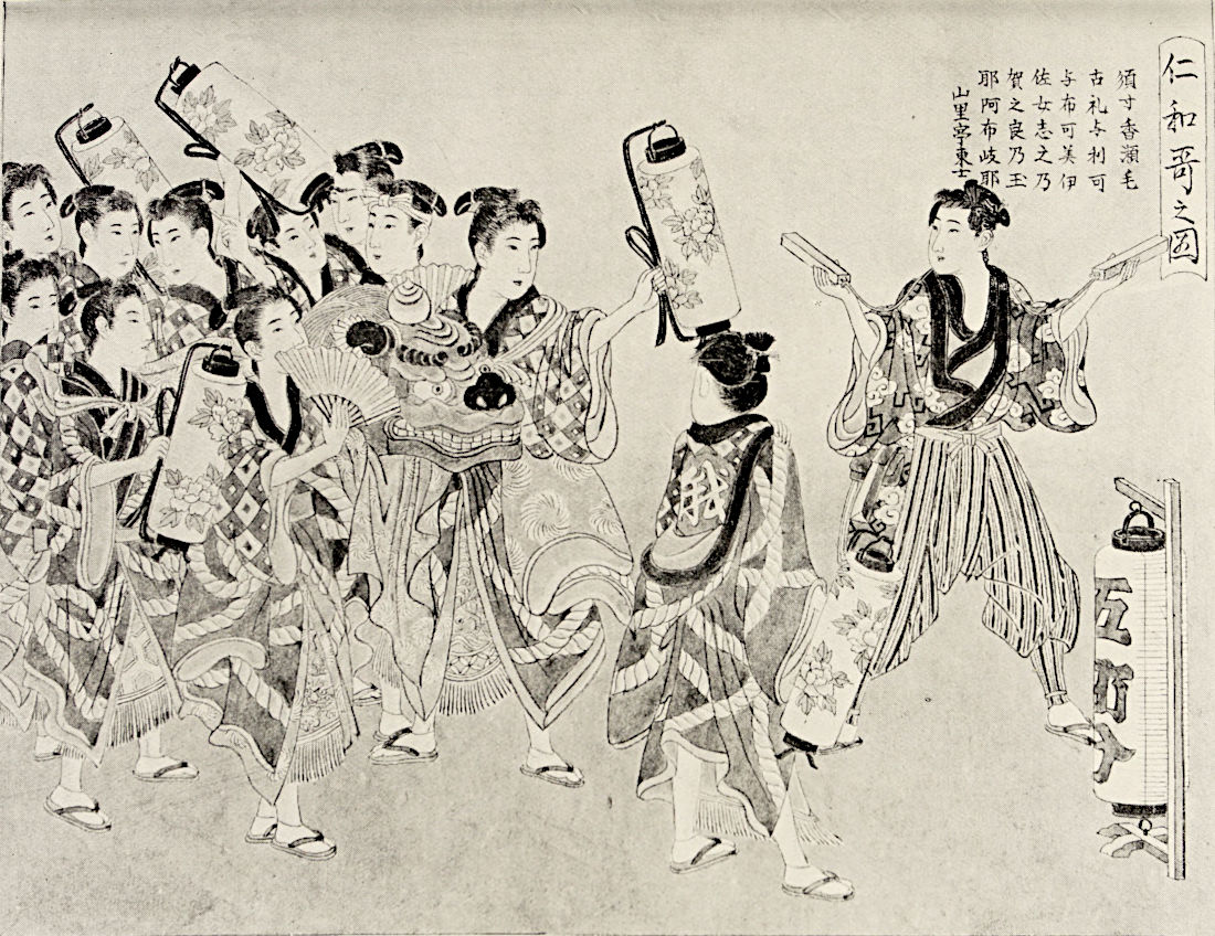 Dai-kagura. A kind of dance performed in the streets by boys wearing wooden lion-head masks. Also called “Shishi-mai.”