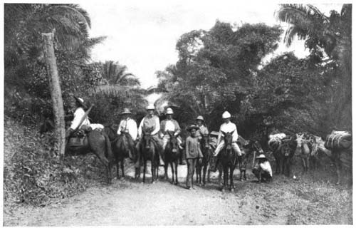 [281]Caracas was the last city we visited on our tour, and perhaps it is just as well that this was so, for had we gone there in the first place we might have been in Caracas still. It is easy to understand why it is attractive. While you were slipping on icy pavements and drinking in pneumonia and the grippe, and while the air was filled with flying particles of ice and snow, and the fog-bound tugs on the East River were shrieking and screeching to each other all through the night, we were sitting out-of-doors in the Plaza de Bolivar, looking up at the big statue on its black marble pedestal, under the shade of green palms and in the moonlight, with a band of fifty pieces playing Spanish music, and hundreds of officers in gold uniforms, and pretty women with no covering to their heads but a lace mantilla, circling past in an endless[282] chain of color and laughter and movement. Back of us beyond the trees the cafés sent out through their open fronts the noise of tinkling glasses and the click of the billiard-balls and a flood of colored light, and beyond us on the other side rose the towers and broad façade of the cathedral, white and ghostly in the moonlight, and with a single light swinging in the darkness through the open door.