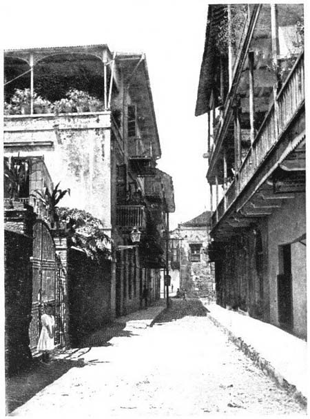 [248]Even without acquaintances among the people of the capital there are enough public show-places in Caracas to entertain a stranger for a fortnight. It is pleasure enough to walk the long, narrow streets under brilliantly colored awnings, between high one- and two-story houses, painted in blues and pinks and greens, and with overhanging red-tiled roofs and projecting iron balconies and open iron-barred windows, through which you gain glimpses beyond of cool interiors and beautiful courts and gardens filled with odd-looking plants around a splashing fountain.