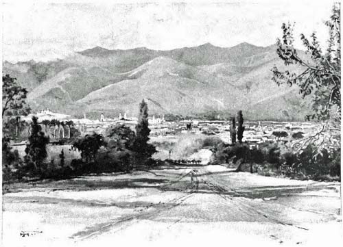 [268]There are some beautiful drives around Caracas, out in the country among the coffee plantations, and one to a public garden that overlooks the city, upon which President Crespo has spent much thought and money. But the most beautiful feature of Caracas, and one that no person who has visited that place will ever forget, is the range of mountains above it, which no president can improve. They are smooth and bare of trees and of a light-green color, except in the waterways, where there are lines of darker green, and the clouds change their aspect continually, covering them with shadows or floating over them from valley to valley, and hovering above a high peak like the white smoke of a volcano.