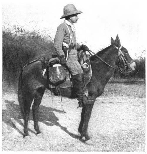 [260]Guzman was followed in rapid succession by three or four other presidents and dictators, who filled their pockets with millions and then fled the country, only waiting until their money was first safely out of it. Then General Crespo, who had started his revolution with seven men, finally overthrew the government’s forces, and was elected president, and has remained in office ever since. To set forth with seven followers to make yourself president of a country as large as France, Portugal, and Spain together requires a great deal of confidence and courage. General Crespo is a fighter, and possesses both. It was either he or one of his generals—the story is told of both—who, when he wanted arms for his cowboys, bade them take off their shirts and grease their bodies and rush through the camp of the enemy in search of them. He told them to hold their left hands out as they ran, and whenever their fingers slipped on a greased body they were to pass it by, but when they touched a man wearing a shirt they were to cut him down with their machetes. In this fashion three hundred of his plainsmen routed two thousand of the regular[261] troops, and captured all of their rifles and ammunition. The idea that when you want arms the enemy is the best person from whom to take them is excellent logic, and that charge of the half-naked men, armed only with their knives, through the sleeping camp is Homeric in its magnificence.