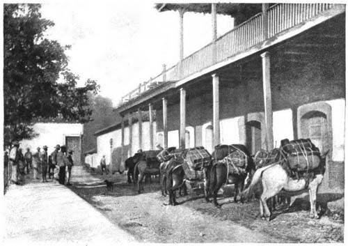 The ladies of Caracas seem to spend much of[249] their time sitting at these windows, and are always there in the late afternoons, when they dress themselves and arrange their hair for the evening, and put a little powder on their faces, and take their places in the cushioned window-seats as though they were in their box at the opera. And though they are within a few inches of the passers-by on the pavement, they can look through them and past them, and are as oblivious of their presence as though they were invisible. In the streets are strings of mules carrying bags of coffee or buried beneath bales of fodder, and jostled by open fiacres, with magnificent coachmen on the box-seat in top-boots and gold trimmings to their hats and coats, and many soldiers, on foot and mounted, hurrying along at a quick step in companies, or strolling leisurely alone. They wear blue uniforms with scarlet trousers and facings, and the president’s body-guard are in white duck and high black boots, and are mounted on magnificent horses.