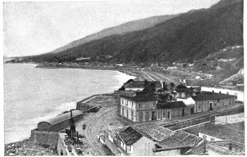[244]You pass through clouds on your way up that leave the trees and rocks along the track damp and shining as after a heavy dew, and at some places you can peer through them from the steps of the car down a straight fall of three thousand feet. When you have climbed to the top of the mountain, you see below you on the other side the beautiful valley in which lies the city of Caracas, cut up evenly by well-kept streets, and diversified by the towers of churches and public buildings and open plazas, with the white houses and gardens of the coffee-planters lying beyond the city at the base of the mountains.