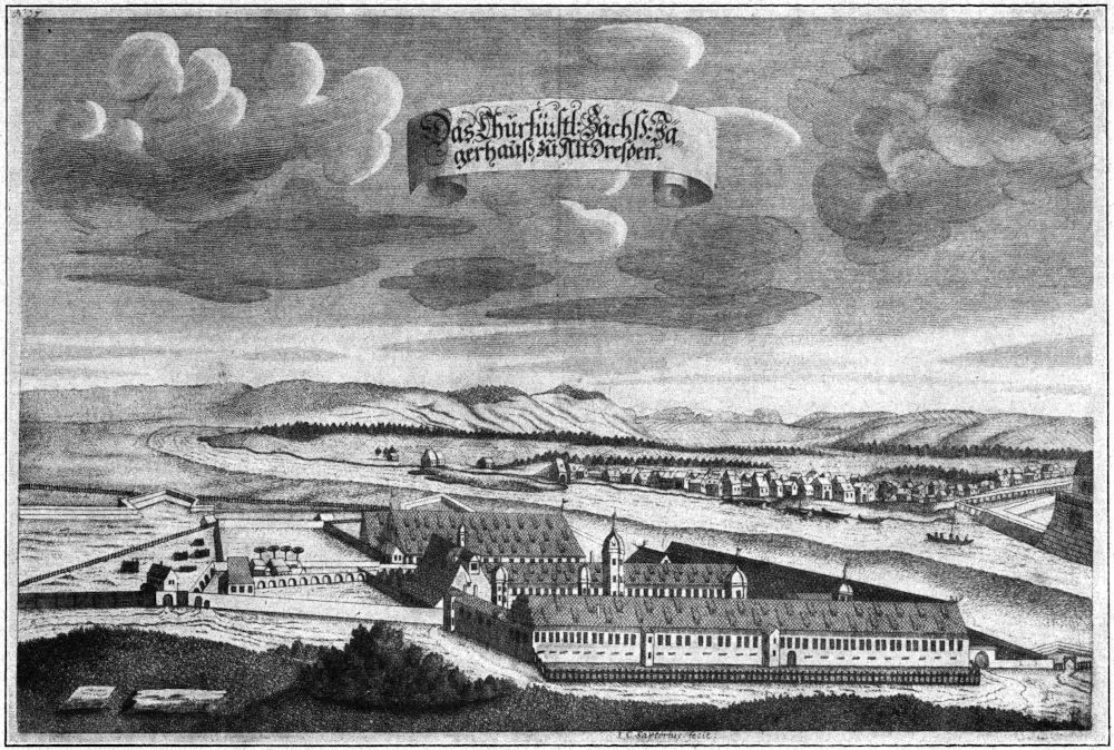 Ein interessantes Aktenstück, das ich der Güte des Herrn Hofrat Professor Seyfert verdanke, gibt Kunde von einer Reparierung der Dächer und Aufsetzen des neu vergoldeten Turmknopfes im Jägerhofe und enthält noch mancherlei wissenswerte Einzelheiten aus der Zeit um 1671; es sei hier auszugsweise wiedergegeben: »Demnach der Durchlauchtigste Hochgeborene Fürst und Herr, Herr Johann Georg der Andere, Hertzog zu Sachßen, Jülich, Kleve und Bergk des Heil. Röm. Reichs Ertz-Marschall und Churfürst Landtgraff in Düringen, Marggraff zu Meißen, auch Ober- und Nieder Lausitz, Burggraf zu Magdeburg, Graff zu der Marck und[218] Ravensberg, Herr zum Ravenstein, Unser allerseits gnädigster Herr und gütigster Landes-Vater, Bey nothwendiger Reparierung dieses Churf. Sächß. Jägerhauses und derer Dächer-Außbeßerung, unter andern auch diesen Thurm besteigen, und selbigen Knopff, weil er ziemlich wandelbar befunden, den 15. Septembris des 1671sten Jahres herunter nehmen, hingegen diesen sambt der Fahne gantz neu verfertigt vergüldeten, den 19ten dieses umb 2 Uhr wieder hinaufsetzen lassen, haben Höchstermeldte Ihr Churf. Durchl. der werten Posterität zu gutem Andenken in gegenwertigen Knopff, welcher guter 3. Viertel übern Diameter, nachfolgende kurtz entworffene Nachricht hinein zu legen und zu verwahren vor gut befunden und gnädigst anbefohlen, Und zwar, so soll anitzo nicht weitläuffig berühret, was etwan im Römischen Reich und andern Orten hin und wieder dieses Jahr geschehen, welches denen Historien: Chronic und Novellen Schreibern zu überlassen, sondern nur dieses, was vor weniger Zeit allhier in unsern Landen geschehen. Wir haben Gott lob und Danck wohlfeile Zeiten, wir wissen von keiner ungesunden Lufft und graßirenden Seuche, keine so wohl öffentl. als innerlichen Kriege und rebellion, sondern es blühet und grünet annoch heutigen Tages bei unß der Anno 1648 durch göttliche Gnade im Heil. Röm. Reich allgemeine sowol Religion- als Profan Friede, daß dannenhero dero Churfürstenthum und Lande an Einwohnern und Unterthanen sehr wohl zugenommen, also daß sowohl in Städten als Dörffern die liebe Jugend in starker Anzahl heran gewachßen und daß Land sich umb ein merkliches gebessert, zu welchem ende dann Unser gnädigster Herr aus Landes Väterl. Vorsorge in seinem gantzen Lande anitzo eine Revision durch die Herren Ober Consistoriales und hierzu verordnete Commißarien unter denen geistlichen angestellet die schwachen Pfarren sonderl. aufm Lande und in den Dörffern von dem benachbarten verstercket, die starcken mit einsetzung noch eines pfarrers, damit der Gottesdienst desto besser und füglicher abgewartet, einem Seelsorger auch sein Ambt nicht so schwer wird: Zertheilet, die Winckel Schüler abgeschafft, hingegen die öffentlichen Stadt- und Landschulen erweitert … Inzwischen ist nicht zu vergessen, daß an der vor drey Jahren durch einen starcken unversehenen Donnerschlag hohen biß auff den innern Gang gantz herunter geschlagenen Kreutzthurm Haube und Seiten Thürmchen, nach der Schule zu in Neu-Dresden, wie auch in diesem Jägerhause nechst den Bärengarten an einem Löwenhause (so den 8ten July instehenden Jahres von Churf. Durchl. selbst eigner Person, neben hohen Cavalieren und hierzu verordnete Baumeister durch legung des Ersten Grundsteins zu bauen angefangen worden) annoch sehr starck gearbeitet wird, zu dem ende, damit Stadt Dresden desto ehe wieder gezieret und die beyden vom Großhertzog von Florentz Ihr Churf. Durchl. von dort aus allhier nacher Dreßden zu einem Präsent geschickten Löwen, welche nach einem verflossenen Jahre drey junge Löwen, als in diesen Landen noch nicht erhört, gezeuget und zumahl wegen des alten in Neu-Dreßden zu kleinen und sehr baufälligen Löwenhauses [in der Schössergasse] wie auch besserer Lauff und Bequemlichkeit vor Selbige, mit der Zeit hinein gethan würden, umb so viel desto mehr und weiln die hiergezeugten Jungen Löwen eine fürtreffliche rarität beym Hause Sachsen sind, soll dieses itztgedachte Löwenhauß vor eilff Wochen nunmehr angefangen und zehn Ellen über die Erden aufgeführt, auch zu einer sonderbaren[219] künftigen Zierde des Jägerhauses, der vierte Theil davon noch vor winters ins Dach gebracht werden. Im übrigen ist zum Schluß zu vermelden,