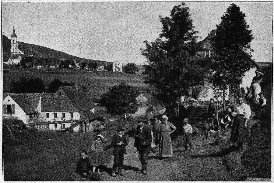 Auf steinigem Wege steigen wir hinunter ins Dorf Wiedersberg. Ein steiler, beschwerlicher Abstieg. Der Klausner im Knusperhäuschen ist neben seinem Doppelberufe als Gastwirt und Tischlermeister auch noch als Standesbeamter tätig, und die guten Wiedersberger, die sich dem Ehejoche zu beugen gedenken, treten einen schweren Gang an, wenn sie zum Standesamte wallen.
