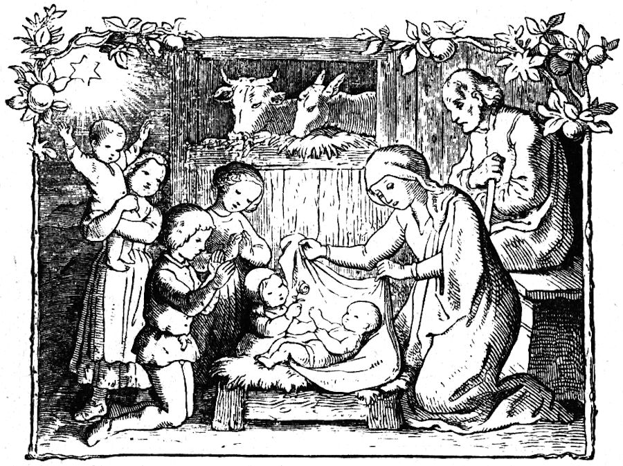 Nach dem Auftreten des Ruprecht zieht singend der Engelchor ein. Das Adventspiel bricht ab, das Christgeburtspiel beginnt. Gemessen an der, an dieser Stelle besonders breiten schlesischen Überlieferung, sind die in der Nordlausitz noch lebendigen Reste dürftig zu nennen. Es fehlt die Herbergsuche, die Erscheinung der Engel, das zögernde, bäurisch-komische Aufbrechen der Hirten, die Hirtenanbetung, die Beschenkung des Kindes, die Reue des Wirtes. Es hat sich erhalten der wertvollste lyrische Kern des Stückes: das Kindelwiegen. Die Szene ist von außerordentlicher Zartheit und Innigkeit. Sie geht zurück auf ein hessisches Weihnachtsspiel des fünfzehnten Jahrhunderts. Die älteste Form des Zwiegesanges zwischen Maria und Joseph ist uns in einer Leipziger Aufzeichnung vom Jahre 1305 erhalten.