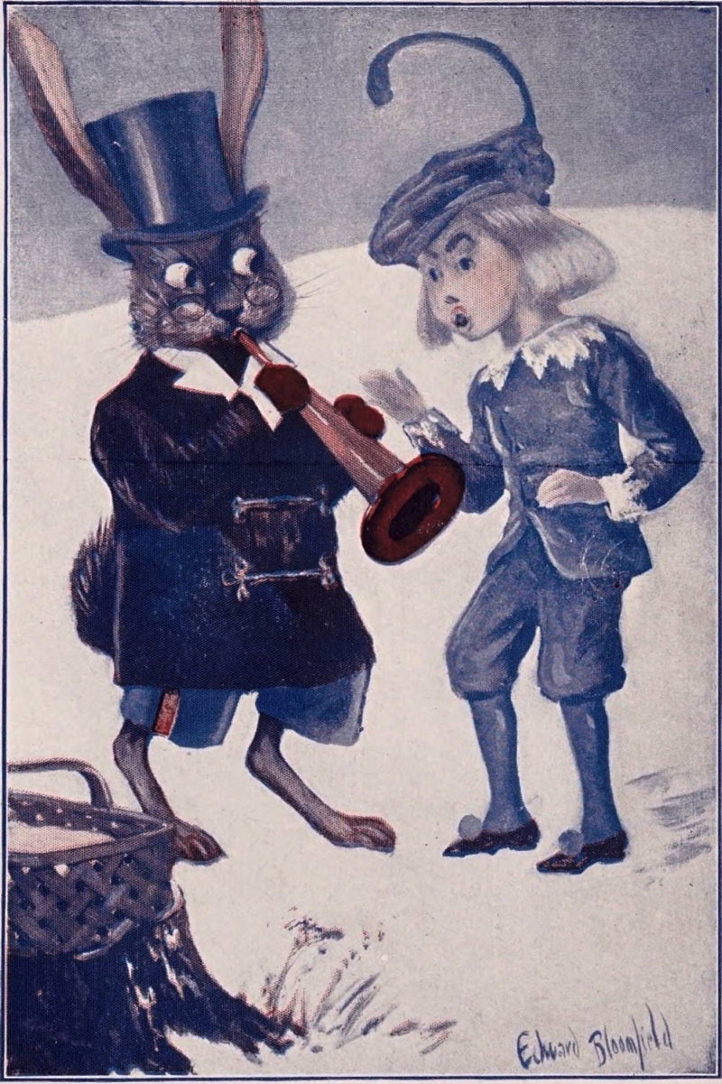Then the old rabbit gentleman, who was as fond of fun as a kitten, would put on his tall silk hat, take his red, white and blue-striped barber-pole rheumatism crutch, that Nurse Jane had gnawed for him out of a corn-stalk, and he would go out to play with the rabbit children, about whom I have told you in other books.