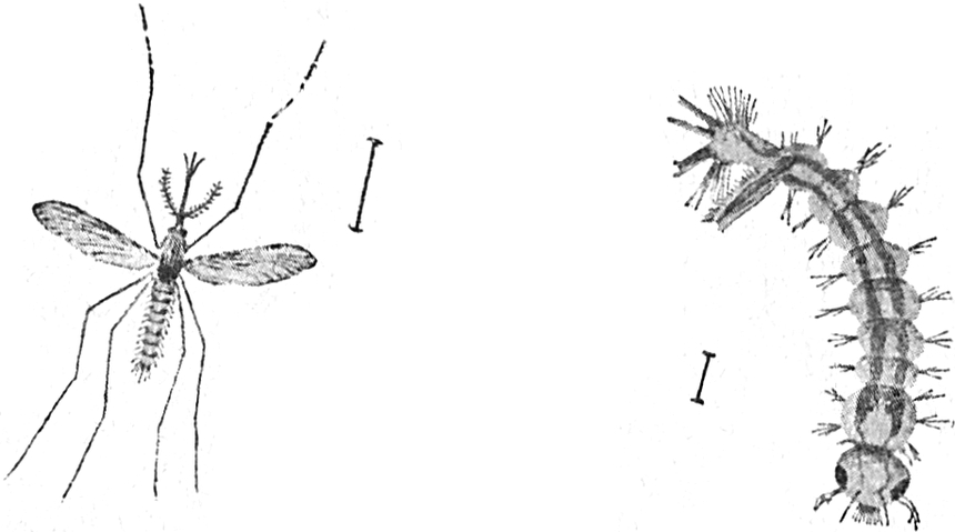 Wenn man im Monat Mai einen Eimer Wasser aus einem Teiche holt und ihn im Freien hinstellt, kann man vielleicht die Mücke aufwachsen sehen, denn es ist sehr wahrscheinlich, daß eine Menge darin sind. Aber man muß scharfe Augen haben, da die Larven sehr klein sind.
