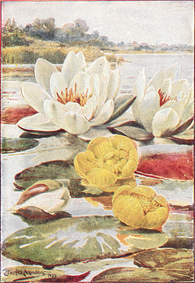 „Sieh, Peter, ich muß eine von jenen schönen gelben Wasserrosen haben mit ihren großen glänzend grünen Blättern und eine von ihren sonderbaren Samenkapseln, die zurückbleiben, nachdem die gelben Blumenkronblätter abgefallen sind. Ich weiß, daß die Pflanze einen dicken Stamm im Schlamm unten im Teiche hat, und die langen Stengel wachsen gerade herauf, so daß die Blätter auf der Oberfläche des Wassers schwimmen. Kleine Käfer kriechen in die Blüte hinein und holen Honig aus dem Innern der gelben Blüte.“