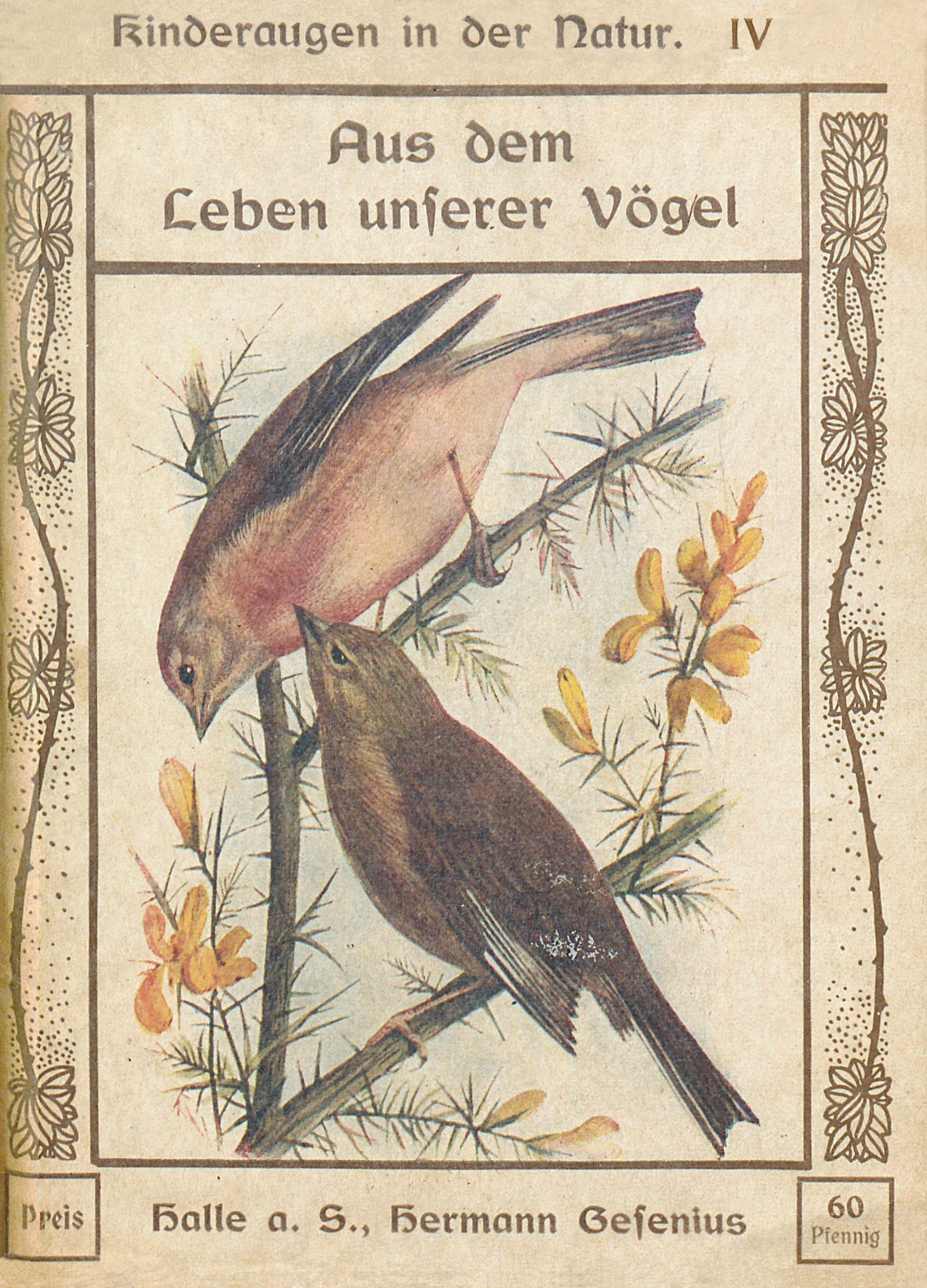 Aus einer Bekanntmachung „Vogelschutz“. Zunächst aber gilt es, die Kenntnis der Raubvögel soweit zu fördern, daß die wichtigsten einzelnen Arten voneinander unterschieden werden können. Hier muß die Schule eingreifen, wenn ein Erfolg erzielt werden soll. Wir ersuchen deshalb die Herren Lehrer dringend, sich mit diesem Stoffe vertraut zu machen, ihn den Kindern zu vermitteln und ihr Interesse für die Schonung und Erhaltung der hier genannten nützlichen und schönen Raubvögel zu erwecken. Den Schulvorständen und Schuldeputationen wird zur Anschaffung für die Schulbibliothek als Lehrmittel empfohlen: