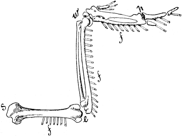 Seht sie einmal an, wie sie über den Hof watschelt. Ihre Füße haben zwischen den drei Vorderzehen eine Haut, die diese miteinander verbindet. Das heißt, sie ist mit Schwimmfüßen versehen. Nun achtet darauf, daß, wenn sie den Fuß aufhebt, die Haut sich wie ein Fächer zusammenfaltet, und daß sich dieselbe wieder ausbreitet, wenn sie den Fuß niedersetzt. Wenn sie den Teich erreicht, gleitet sie ins Wasser und beginnt zu paddeln, indem sie die Füße abwechselnd benutzt, gerade wie wir beim Gehen. In klarem Wasser kann man sehen, daß die Haut sich wie beim Gehen zusammenfaltet, wenn sie den Fuß vorwärts streckt, daß sie sich öffnet, wenn sie ihn zurückstößt und gegen das Wasser schlägt. Die Haut öffnet sich also und bildet eine Art Ruder, mit dem sie sich vorwärts treibt.