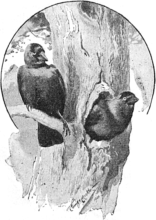 Ein Freund von mir, der in der Nähe eines Krähenhorstes wohnt, erzählt, daß er beobachtet habe, wie zwei Wachtkrähen jeden Morgen umherfliegen und die anderen aufwecken, und es ist sehr spaßig zu sehen, wie die faulen[S. 59] zuletzt in großer Eile herauskriechen, um noch zur rechten Zeit mit den anderen fortfliegen zu können.