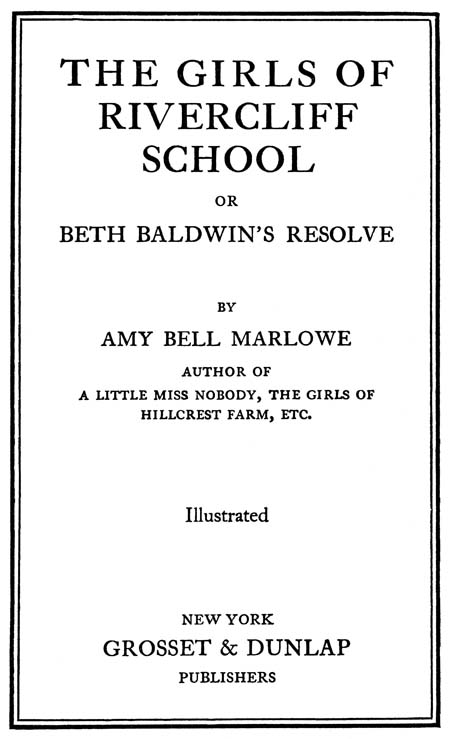 On the following pages will be found a list of Miss Marlowe’s books. Every girl in our land ought to read these fresh and wholesome tales. They are to be found at all booksellers. Each volume is handsomely illustrated and bound in cloth, stamped in colors. Published by Grosset & Dunlap, New York. A free catalogue of Miss Marlowe’s books may be had for the asking.