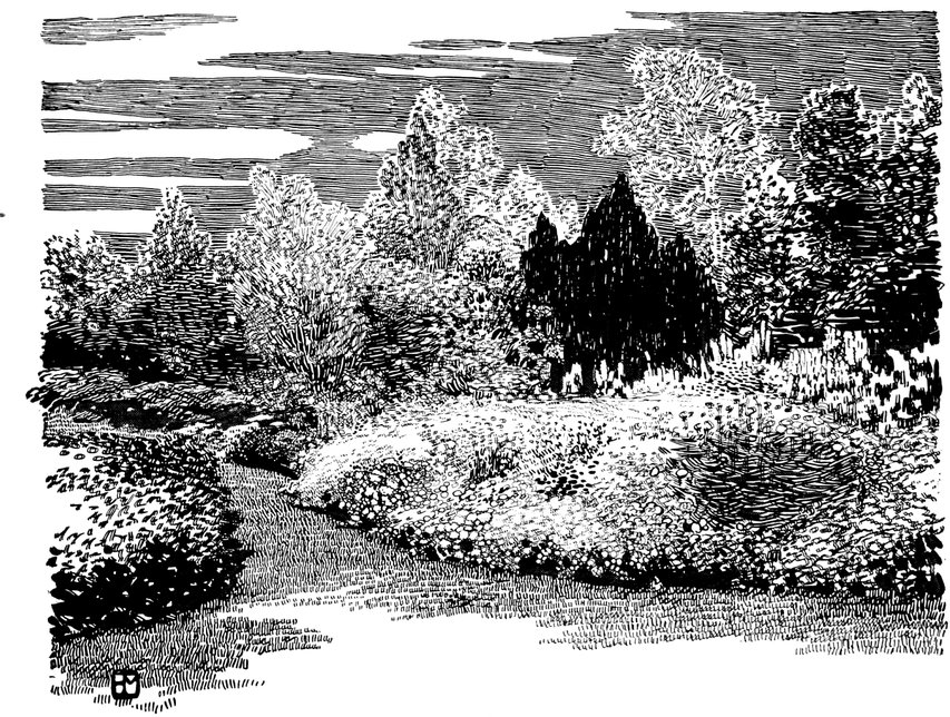 Although each year an increasing number of people interest themselves in out-of-door life and the habits of birds, trees, and wild flowers, they may realize only the striking contrast between a landscape where deciduous trees predominate and another where evergreens give the characteristic note. Everyone can see the difference between the austerity of the rock-bound coast 4of Maine, the quiet beauty of a Massachusetts intervale, and the sleepy luxuriance of the Pennsylvania pastoral country, but slight variations between these may often pass unnoticed; it is only in trying to copy the expression of a landscape, or rather to fit in with its character, that it is possible to realize how infinite and yet how minute these variations are. The quality of the light is perhaps the most important. There is a pellucid quality in the northern atmosphere which does not demand shade as do the richer colors and warmer light farther to the south. The recognition of the importance of the balance between light and shade was one of the chief elements in the composition of the great Italian garden artists. They used shadow as having the same value of accent as color. Their long and sunlit walks were relieved by patches of shade; their brilliant and sometimes glaring parterres, vibrating with light, were contrasted with the cool darkness of a little grove. This feeling for the balance between light and shade may not have been a faculty consciously exercised on their part, but it is unquestionably a feeling without which no artist can make a composition at all. We are apt to read into the people of a past time subtleties of which they probably knew nothing, on the principle of