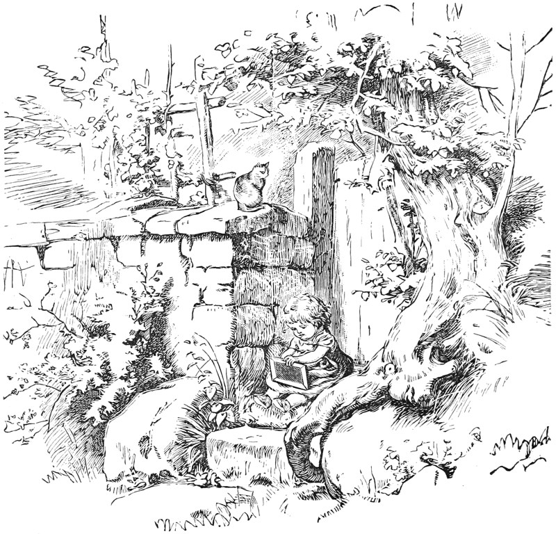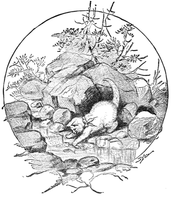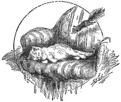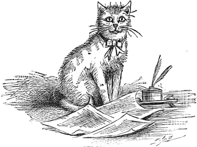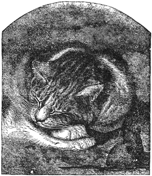 “I had the same luck in fishing. There was a stream at the bottom of our garden and at its edge were large mossy rocks on which a cat might stretch herself in the sun, or if the day were hot she might lie in their cool shade. Trees grew near by and any other cat would have often caught a bird among their branches. The next house cat did this. I did not do this. Any other cat than myself would have now and then caught a fish in the stream at the foot of the rocks. The next house cat did this. I did not do this. I often lay close to the water—as shown how to do by the next house cat, and watched the fishes as they glided past. When one rose to the top I did my best to catch it, but even did I have the luck to touch one, it was sure to slip out and away. I used to think sometimes that if fishes had not been made so slippery I could have held on, but then the next house cat held on to slippery fishes. I am almost sure I must have been born short-clawed.