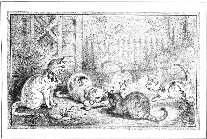 “One night I thought surely I should taste a bit of meat. A black-and-white kitten kindly told me of a large bone she had seen in a yard, and we scampered to that yard. But alas! three others were already gnawing the bone and there was nothing on the bone, for a tommy cat had kept the others away till he had eaten off all the meat and then he sat seeing them gnaw the bare bone. I did not gnaw. I did not wish to gnaw bare bone.