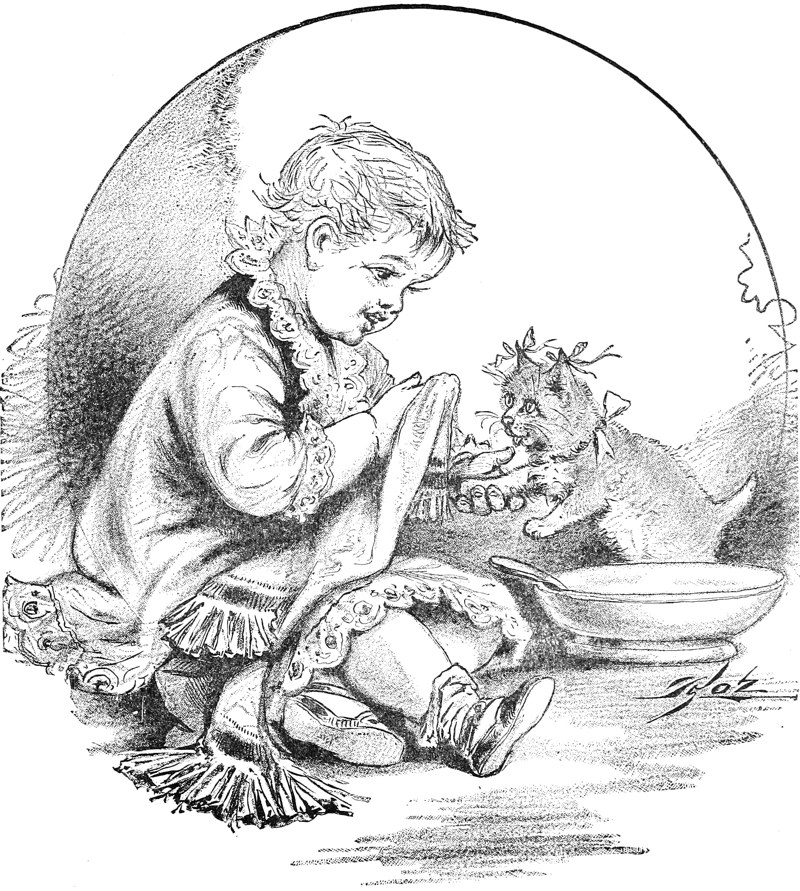 “One day when girl-Mary sat by our basket, girl-Jane came down there bringing her own cat and kittens. Girl-Jane had called to see us many times, and I had been pleased with the looks of her face, and the sounds of her voice, and the touches of her fingers; and she knew the best way of stroking. “Girl-Jane was smaller than girl-Mary, but she knew more. Girl-Jane said she wanted girl-Mary to change kittens with her. She wanted me and Minnie because we were whiter than her kittens.