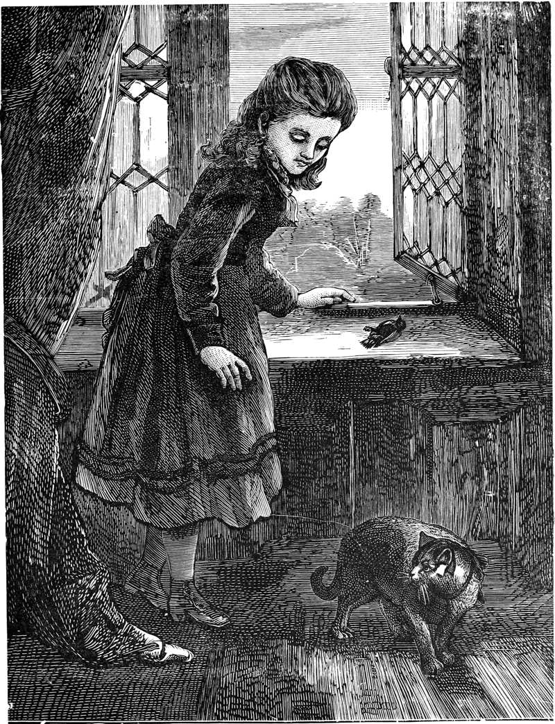 “‘Why! how white and clean she has made herself,’ said the maiden. ‘She is a neat cat. I have often seen her cleaning herself out under the bushes. I mean to keep her. She is just the cat for poor Ellen.’