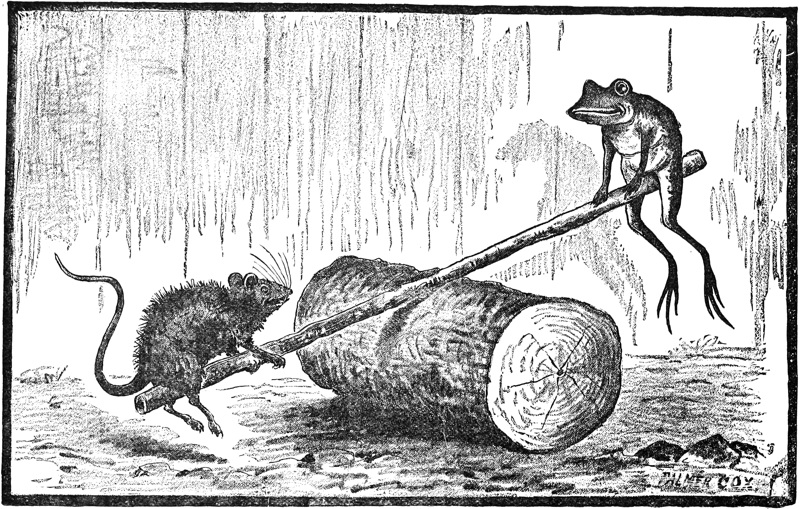 “The young rat promised not to eat any tadpoles, and the young frog took care of him and they lived together, and played tag together, and hide-and-seek together, and tiltered together, and did other things together. When the frog hid he croaked for the rat to come and find him, and when the rat hid he squealed for the frog to come and find him. When the frog hid among the cat-o’-nine-tails, the young rat wouldn’t play; and when they played tag, if the frog went among the cat-o’-nine-tails the rat wouldn’t chase. When they played tilter, they had to tilt high so that the frog’s legs need not touch the ground.