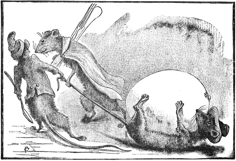 “They did so. The gentleman rat that had the knife gave the knife to the gentleman rat that had the fork and lay down flat on his back, and held the egg in all four of his legs and the other two drew him by his tail and the egg went safe and he got a ride.