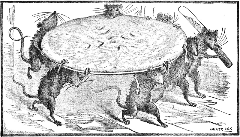 “Next came a great many rats with a pie so big they could hardly lift it. They were afraid they should drop it, and they held it up with all their might by their heads and their backs, and their shoulders. The Pie-cutter with his knife came close behind. The young rat went to help.