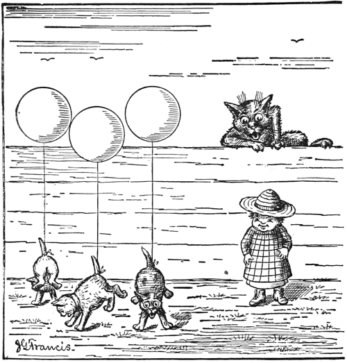 “Three kittens, Faw, Sol, and Law, were once playing in a yard when a short boy named Chickerchecker came and tied air-balls to their tails so that he might have the fun of seeing the air-balls take Faw, Sol, and Law up in the air.