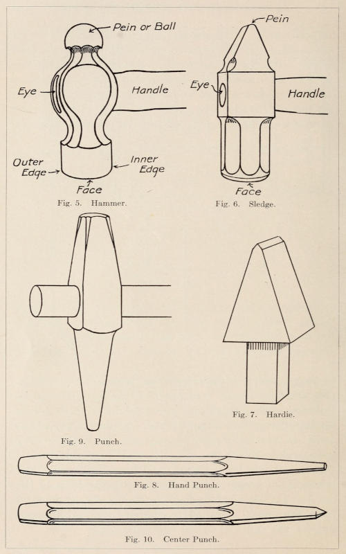 | Making a Flat Cold Chisel—Spring Tempering—Welding Steel—Case Hardening—Coloring Steel—Annealing—Making a Scratch Awl—Making a Center Punch—Making a Hand Punch—High Speed Steel—Annealing High Speed Steel | 70 |